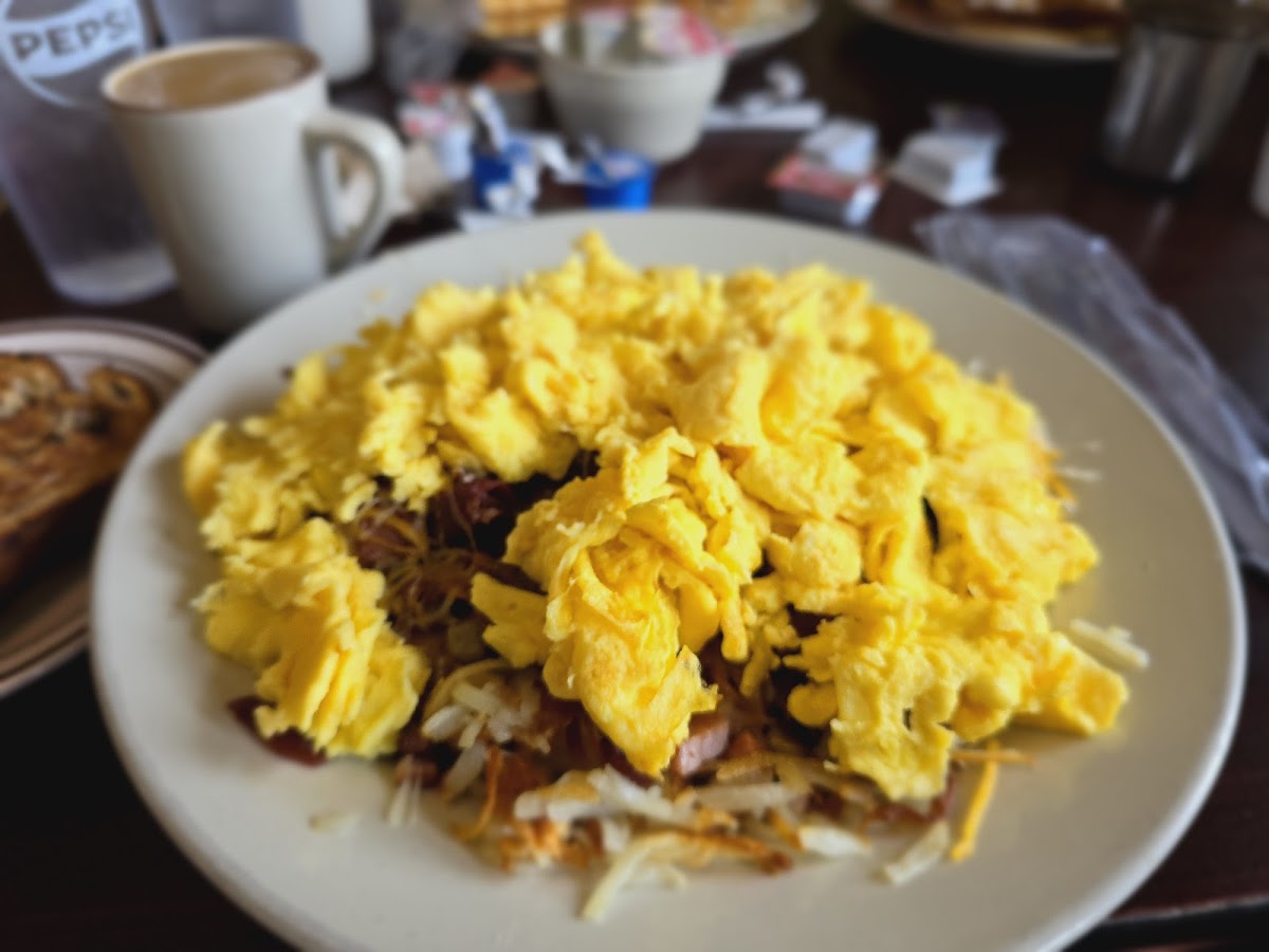 Large servings and delicious. Server was attentive. Extensive menu for breakfast and lunch. Specials were offered.