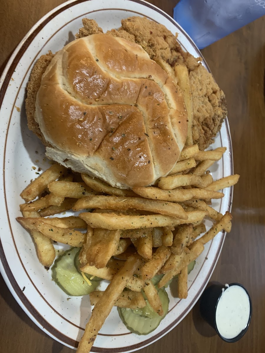 Great place to eat tried the tenderloin sandwich it was a big portion with 2 sides. It tasted good and reasonably priced. The service was good as well.